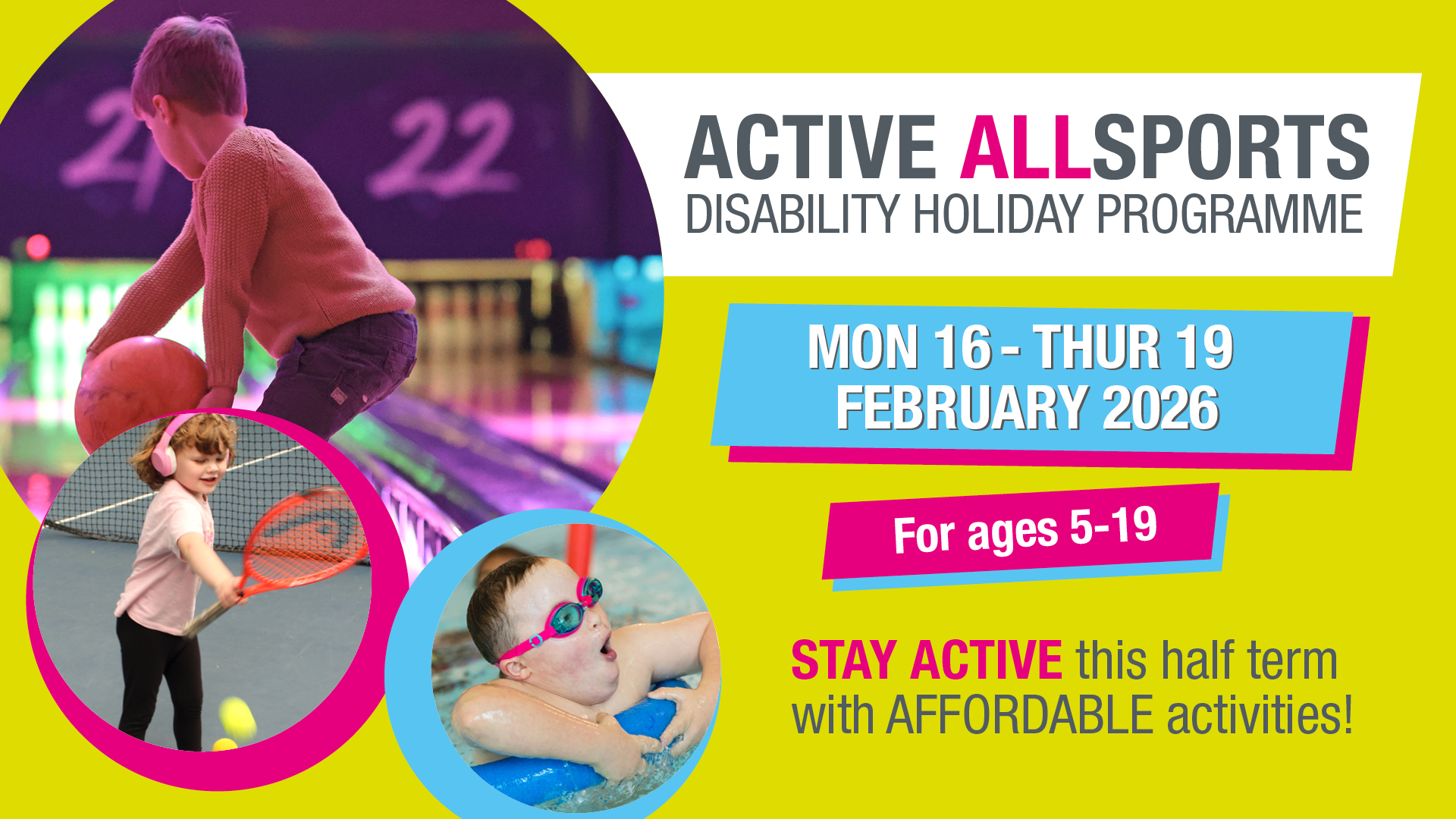 The Active Allsports holiday disability activity programmes offers children and young people with a disability or additional need the opportunity to stay healthy and active through the holidays.
