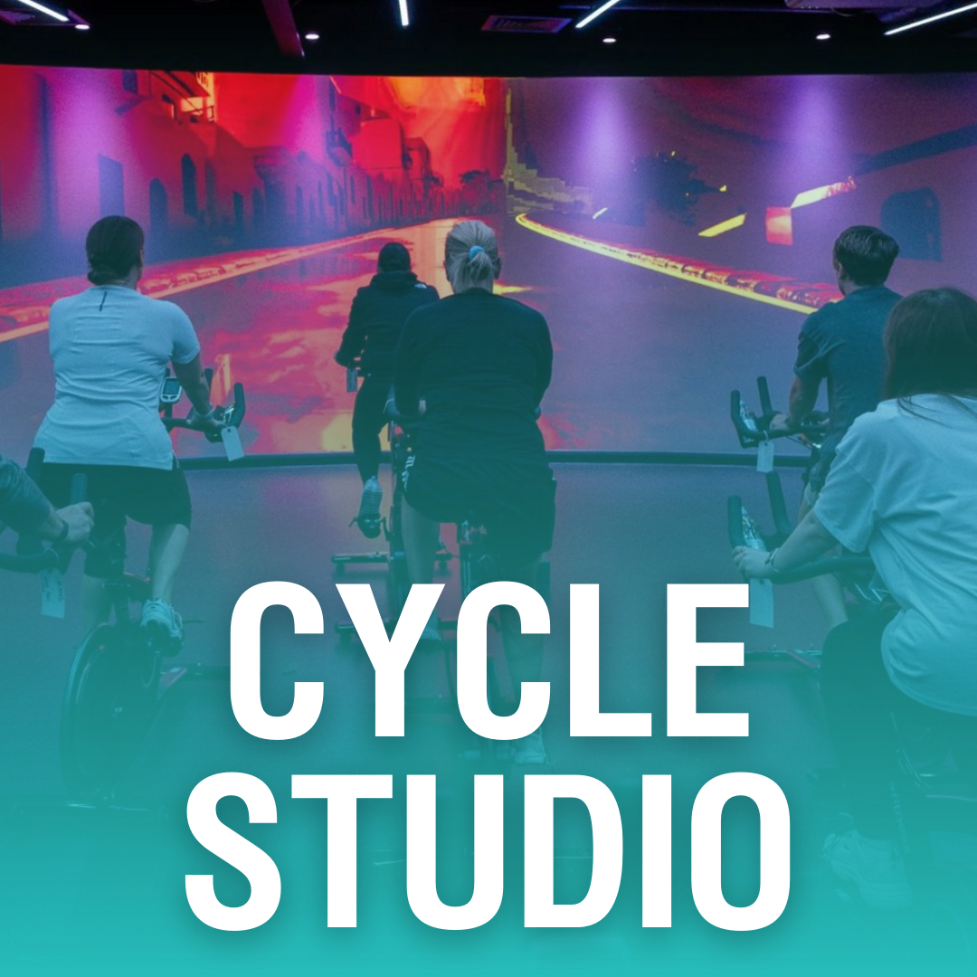 This state of the art fully IMMERSIVE CYCLING STUDIO features high quality cycling video projected onto a floor to ceiling screen to create a series of paths to cycle through. It is equipped with high quality full surround sound to provide you with an immersive escape from your day and something completely different from your regular exercise routine.